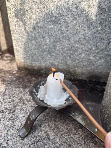 飛行機だったためチャッカマンをもてず、お寺様に火をお借りしたら、とてもムーディな蝋燭で思わず「わーお」と声が出ました🤩