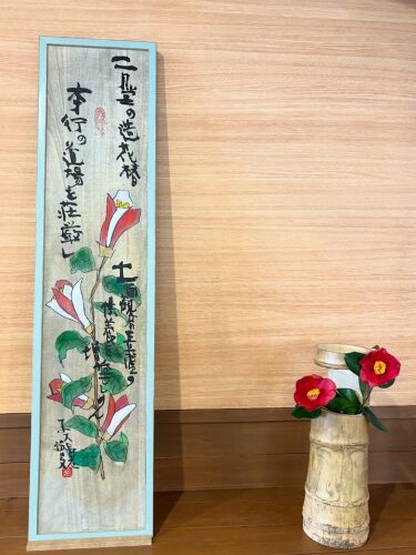入り口には、のりこぼしの椿や、