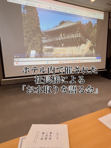 しばらくするとこれもお楽しみであった、ホテル尾花中野社長による宿泊者のみ参加可能な修二会解説くださる『お水取りを語る会』に参加✨✨