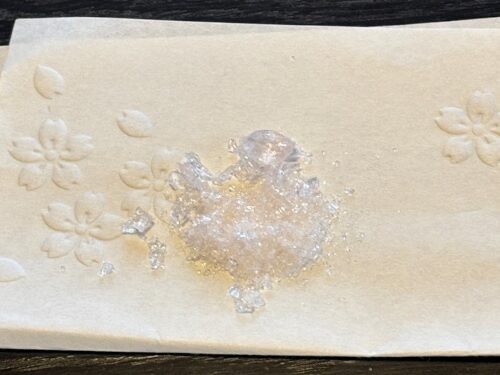 またアンバーグリスの飴ちゃんが、送付が当日に間に合わず一つの飴をY様にお外で割っていただき
